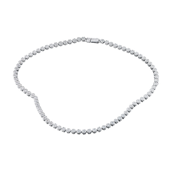 Колье с бриллиантами (изготовление) — яркая модель размером 40.0, которая займет видное место в вашей коллекции драгоценностей или станет идеальным презентом дорогому человеку. Роскошное, изящное и притягательное изделие с якутскими камнями, имеющими безупречную огранку и эталонную прозрачность, будет ярким акцентом в любом образе и сделает элегантным даже самый простой наряд. Белое золото (585 проба) — идеальный фон для бриллиантов, в полной мере раскрывающий их красоту и утонченность. Вес модели составляет 30.01 граммов, на шее она смотрится очень аккуратно и не доставляет дискомфорта. — приемлемая цена за возможность выделиться из толпы и получить множество восхищенных взглядов.