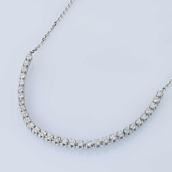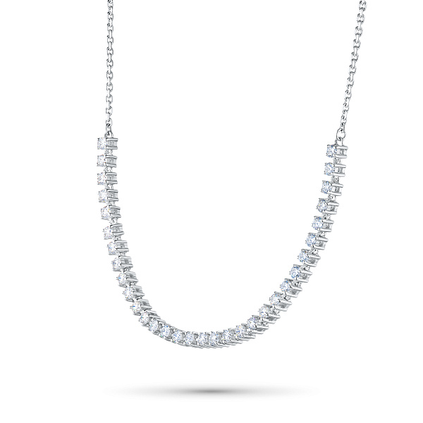 Колье с бриллиантами (изготовление) — яркая модель размером 40.0, которая займет видное место в вашей коллекции драгоценностей или станет идеальным презентом дорогому человеку. Роскошное, изящное и притягательное изделие с якутскими камнями, имеющими безупречную огранку и эталонную прозрачность, будет ярким акцентом в любом образе и сделает элегантным даже самый простой наряд. Белое золото (585 проба) — идеальный фон для бриллиантов, в полной мере раскрывающий их красоту и утонченность. Вес модели составляет 7.79 граммов, на шее она смотрится очень аккуратно и не доставляет дискомфорта. — приемлемая цена за возможность выделиться из толпы и получить множество восхищенных взглядов.