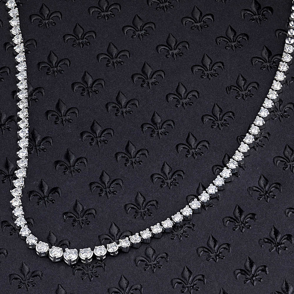 Колье с бриллиантами (изготовление) — яркая модель размером 40.0, которая займет видное место в вашей коллекции драгоценностей или станет идеальным презентом дорогому человеку. Роскошное, изящное и притягательное изделие с якутскими камнями, имеющими безупречную огранку и эталонную прозрачность, будет ярким акцентом в любом образе и сделает элегантным даже самый простой наряд. Белое золото (585 проба) — идеальный фон для бриллиантов, в полной мере раскрывающий их красоту и утонченность. Вес модели составляет 22.56 грамма, на шее она смотрится очень аккуратно и не доставляет дискомфорта. — приемлемая цена за возможность выделиться из толпы и получить множество восхищенных взглядов.