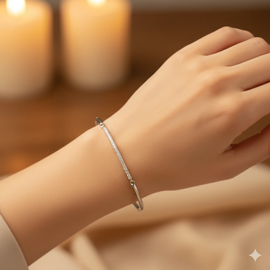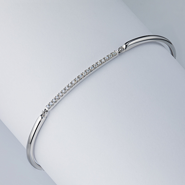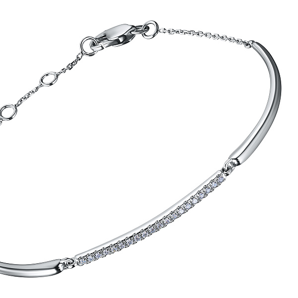 Браслет из серебра — изысканное украшение для стильного образа. Ненавязчиво демонстрирует ваш статус, материальное благосостояние, хороший вкус. Серебро надолго сохраняет внешний вид, не боится коррозии. Благородный блеск драгоценного металла и роскошное сверкание бриллиантов не останутся незамеченными. Это именно тот штрих, которого не хватает деловому костюму или вечернему платью.