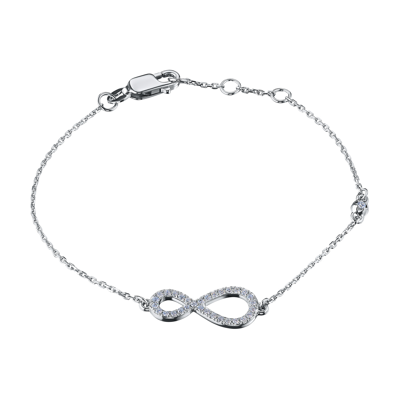 Браслет весит 2.11 грамма, имеет пробу 925, сертификационную бирку, продается в фирменной черной коробочке. Доступная цена, всего 19 440 ₽, от производителя «ЭПЛ Даймонд». Вставка — бриллианты высокой чистоты и прозрачности, без изъянов. Проверить качество камней вы можете в любой геммологической лаборатории.