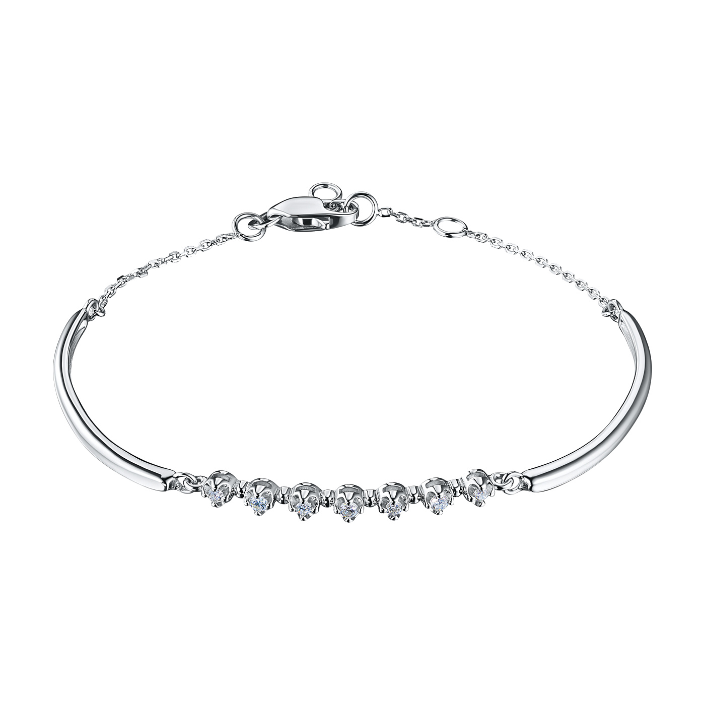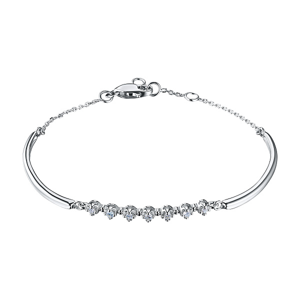 Браслет из серебра — изысканное украшение для стильного образа. Ненавязчиво демонстрирует ваш статус, материальное благосостояние, хороший вкус. Серебро надолго сохраняет внешний вид, не боится коррозии. Благородный блеск драгоценного металла и роскошное сверкание бриллиантов не останутся незамеченными. Это именно тот штрих, которого не хватает деловому костюму или вечернему платью.