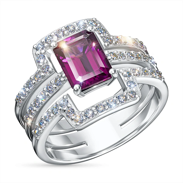 Кольцо из белого золота с родолитом — эксклюзивное украшение компании «ЭПЛ Даймонд». Это идеальный подарок для близкого человека, возможность продемонстрировать свой статус, хороший вкус. В изделии используются бриллианты высокой чистоты и прозрачности, без изъянов. Белое золото великолепно смотрится на руке, хорошо сочетается с другими украшениями. Соберите свой собственный гарнитур в ювелирном магазине «ЭПЛ»! Вес изделия: 6.72 граммов.