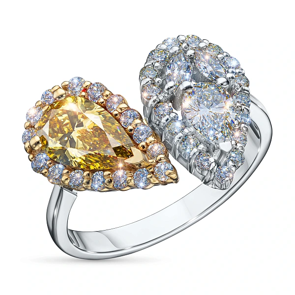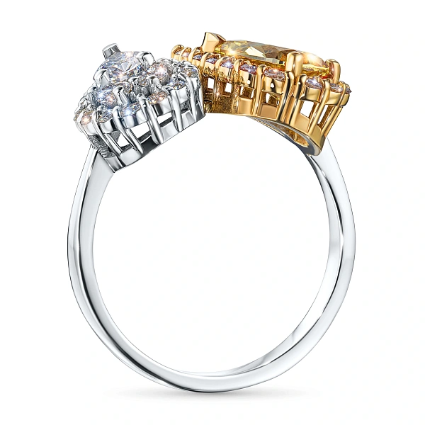 Кольцо из комбинированного золота — эксклюзивное украшение компании «ЭПЛ Даймонд». Это идеальный подарок для близкого человека, возможность продемонстрировать свой статус, хороший вкус. В изделии используются бриллианты высокой чистоты и прозрачности, без изъянов. Комбинированное золото великолепно смотрится на руке, хорошо сочетается с другими украшениями. Соберите свой собственный гарнитур в ювелирном магазине «ЭПЛ»! Вес изделия: 4.48 грамма.