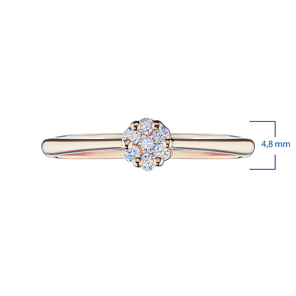 Кольцо из красного золота с бриллиантами — эксклюзивное украшение компании «ЭПЛ Даймонд». Это идеальный подарок для близкого человека, возможность продемонстрировать свой статус, хороший вкус. В изделии используются бриллианты высокой чистоты и прозрачности, без изъянов. Красное золото великолепно смотрится на руке, хорошо сочетается с другими украшениями. Соберите свой собственный гарнитур в ювелирном магазине «ЭПЛ»! Вес изделия: 1.63 грамм.