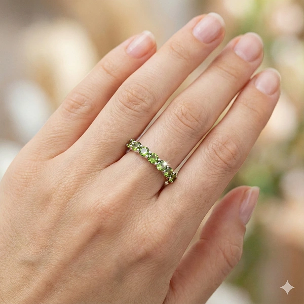 Кольцо из серебра с хромдиопсидами — эксклюзивное украшение компании «ЭПЛ Даймонд». Это идеальный подарок для близкого человека, возможность продемонстрировать свой статус, хороший вкус. В изделии используются бриллианты высокой чистоты и прозрачности, без изъянов. Серебро великолепно смотрится на руке, хорошо сочетается с другими украшениями. Соберите свой собственный гарнитур в ювелирном магазине «ЭПЛ»! Вес изделия: 2.53 грамма.