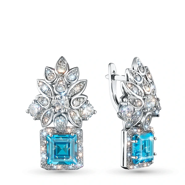 Подвеска из белого золота с бриллиантами и топазом — стильный аксессуар для торжественного случая и на каждый день. Белое золото элегантно смотрится в любом образе, самостоятельно или в сочетании с другими изделиями. Наши цены удивят вас — всего 427 689 ₽ за изделие! Подвеска в обязательном порядке проходит опробование в Пробирной Палате РФ (585 проба). Есть сертификационная бирка.
