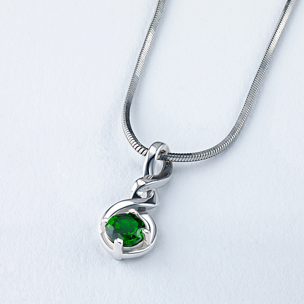 Подвеска из серебра с хромдиопсидом — стильный аксессуар для торжественного случая и на каждый день. Серебро элегантно смотрится в любом образе, самостоятельно или в сочетании с другими изделиями. Наши цены удивят вас — всего 5 270 ₽ за изделие! Подвеска в обязательном порядке проходит опробование в Пробирной Палате РФ (925 проба). Есть сертификационная бирка.