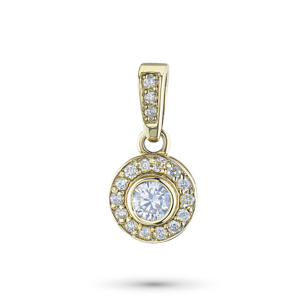 Подвеска из желтого золота с бриллиантами — стильный аксессуар для торжественного случая и на каждый день. Желтое золото элегантно смотрится в любом образе, самостоятельно или в сочетании с другими изделиями. Наши цены удивят вас — всего 37 110 ₽ за изделие! Подвеска в обязательном порядке проходит опробование в Пробирной Палате РФ (585 проба). Есть сертификационная бирка.