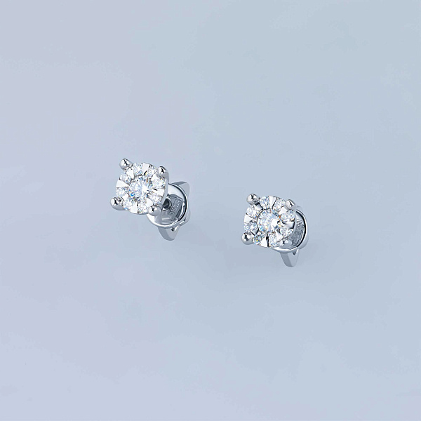 Пусеты из белого золота — великолепное пополнение вашей коллекции украшений. Белое золото подчеркивает игру света на алмазных гранях, не боится влаги, подходит для повседневного ношения. Наши товары реализуются только в фирменных салонах.