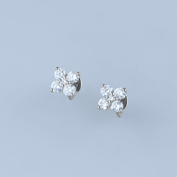 Пусеты из белого золота — великолепное пополнение вашей коллекции украшений. Белое золото подчеркивает игру света на алмазных гранях, не боится влаги, подходит для повседневного ношения. Наши товары реализуются только в фирменных салонах.