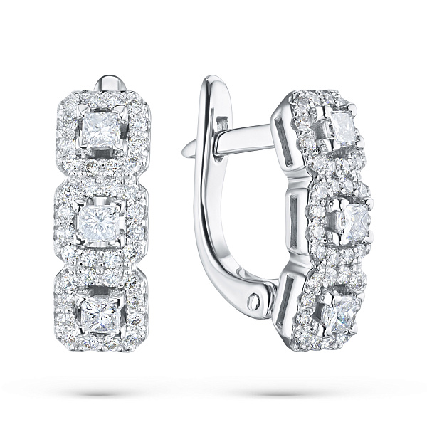 Серьги из белого золота — великолепное пополнение вашей коллекции украшений. Белое золото подчеркивает игру света на алмазных гранях, не боится влаги, подходит для повседневного ношения. Наши товары реализуются только в фирменных салонах.