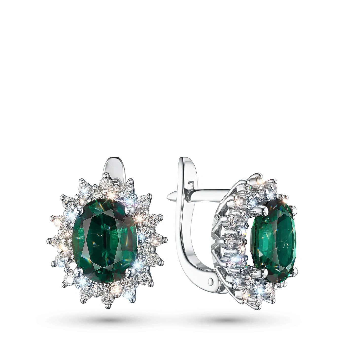 Серьги из белого золота с изумрудами — великолепное пополнение вашей коллекции украшений. Белое золото подчеркивает игру света на алмазных гранях, не боится влаги, подходит для повседневного ношения. Наши товары реализуются только в фирменных салонах.