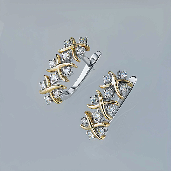 Серьги из комбинированного золота — великолепное пополнение вашей коллекции украшений. Комбинированное золото подчеркивает игру света на алмазных гранях, не боится влаги, подходит для повседневного ношения. Наши товары реализуются только в фирменных салонах.
