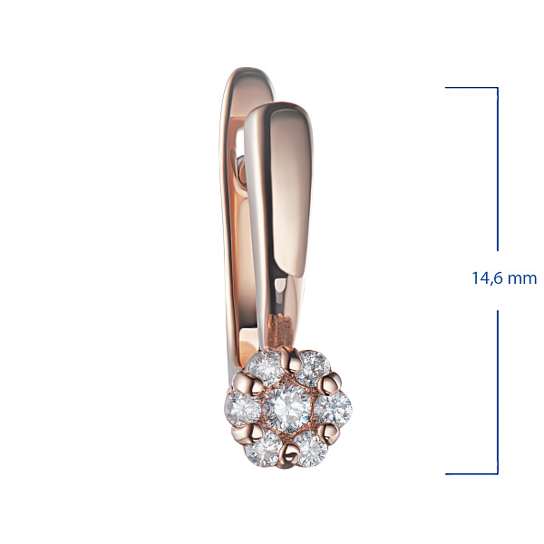 Серьги из красного золота с бриллиантами — великолепное пополнение вашей коллекции украшений. Продается по цене от производителя (94 340 ₽). Ювелирное изделие с настоящими бриллиантами изготовлено на заводе «ЭПЛ Даймонд». Красное золото подчеркивает игру света на алмазных гранях, не боится влаги, подходит для повседневного ношения. Наши товары реализуются только в фирменных салонах.