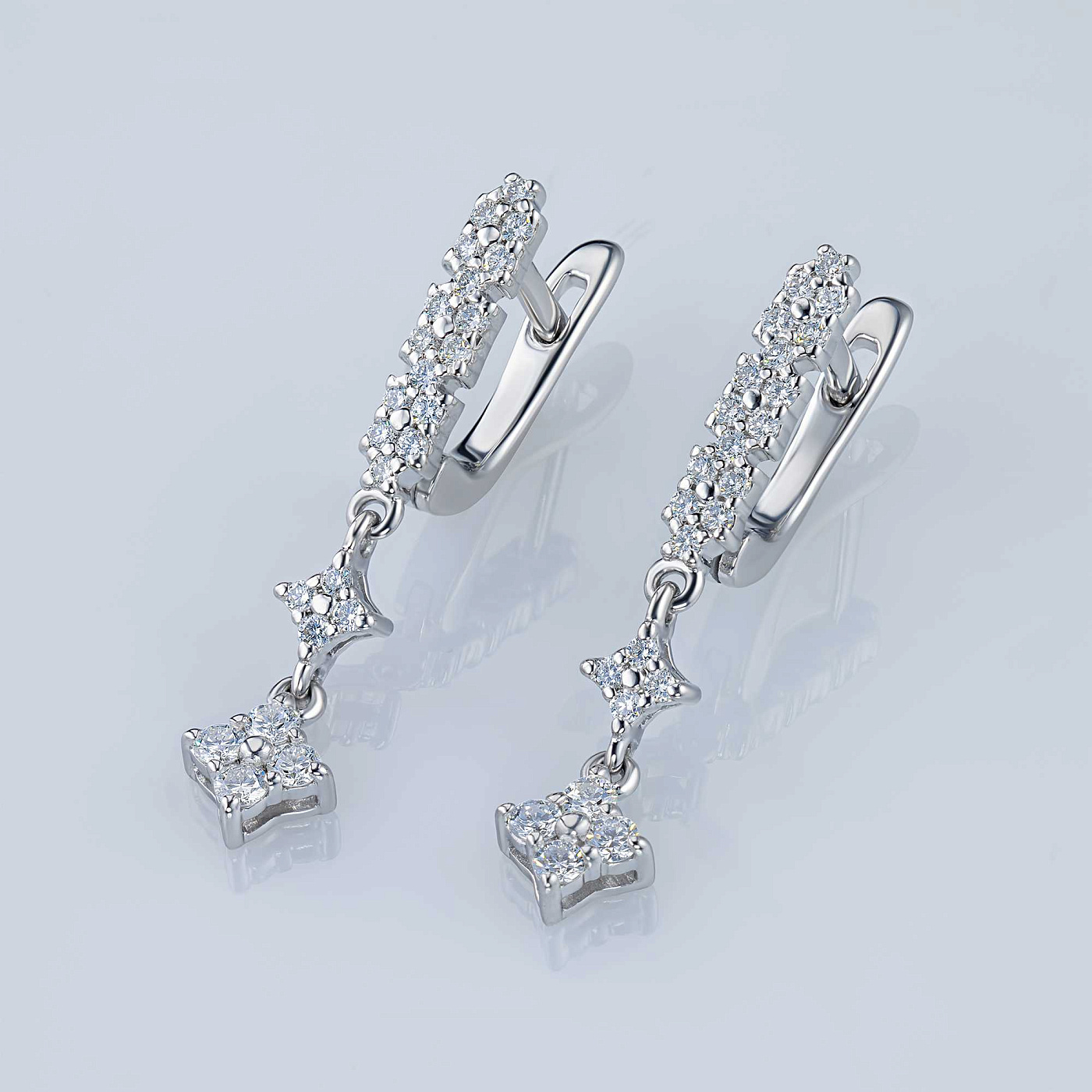 Серьги из серебра — великолепное пополнение вашей коллекции украшений. Серебро подчеркивает игру света на алмазных гранях, не боится влаги, подходит для повседневного ношения. Наши товары реализуются только в фирменных салонах.