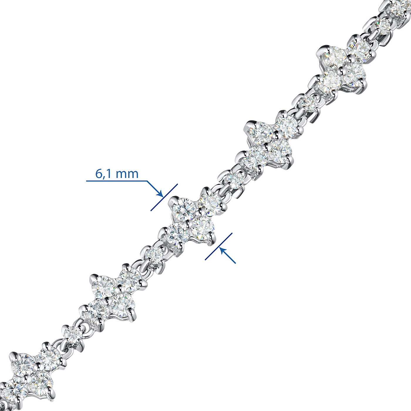 Браслет весит 10.32 граммов, имеет пробу 585, сертификационную бирку, продается в фирменной черной коробочке. Доступная цена, всего , от производителя «ЭПЛ Даймонд». Вставка — бриллианты высокой чистоты и прозрачности, без изъянов. Проверить качество камней вы можете в любой геммологической лаборатории.