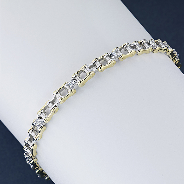 Браслет с бриллиантом (изготовление) — изысканное украшение для стильного образа. Ненавязчиво демонстрирует ваш статус, материальное благосостояние, хороший вкус. Комбинированное золото надолго сохраняет внешний вид, не боится коррозии. Благородный блеск драгоценного металла и роскошное сверкание бриллиантов не останутся незамеченными. Это именно тот штрих, которого не хватает деловому костюму или вечернему платью.