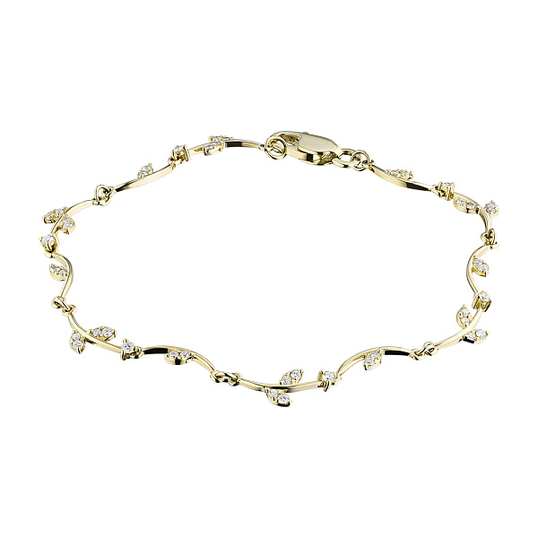 Браслет весит 2.66 грамма, имеет пробу 585, сертификационную бирку, продается в фирменной черной коробочке. Доступная цена, всего , от производителя «ЭПЛ Даймонд». Вставка — бриллианты высокой чистоты и прозрачности, без изъянов. Проверить качество камней вы можете в любой геммологической лаборатории.