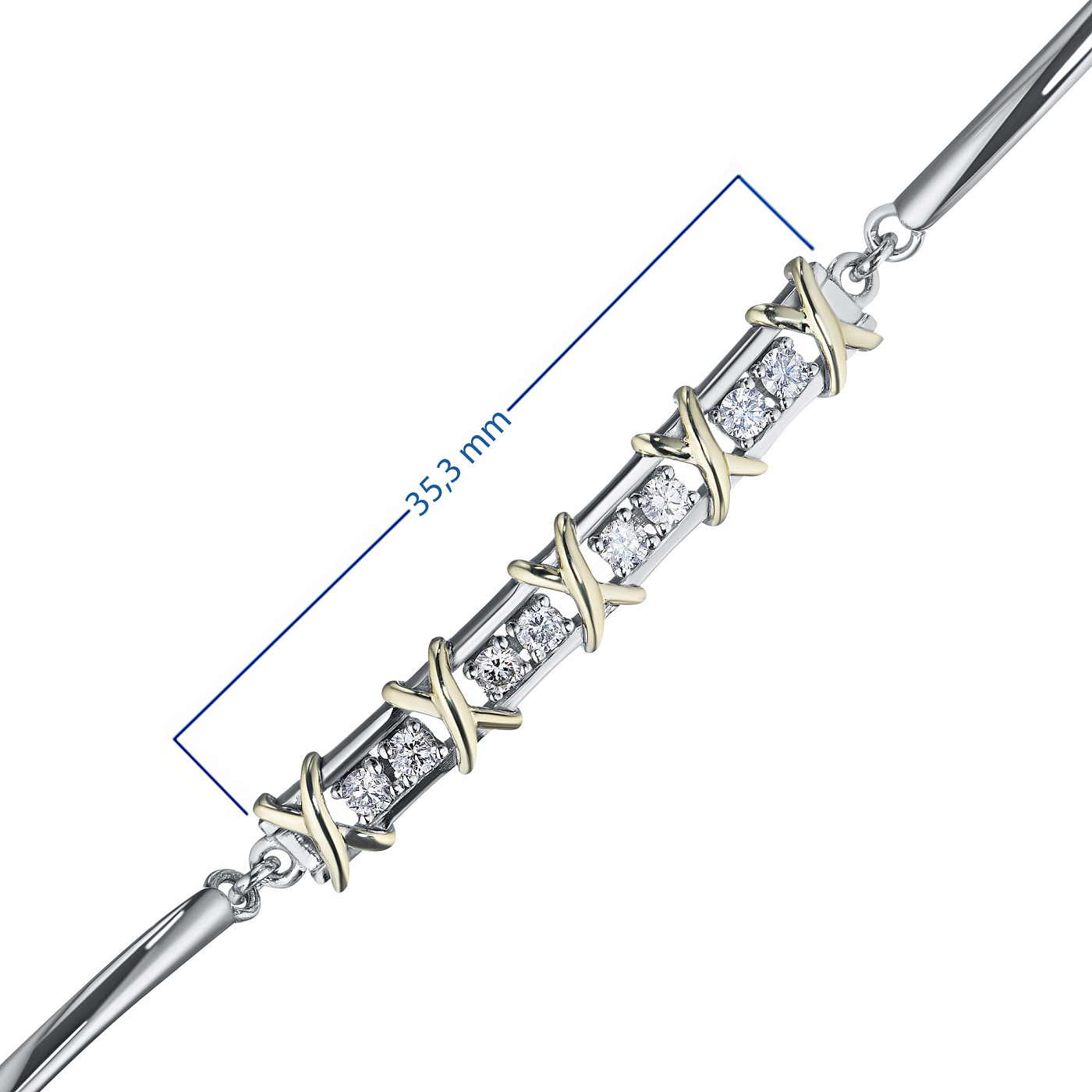 Браслет весит 6.09 граммов, имеет пробу 585, сертификационную бирку, продается в фирменной черной коробочке. Доступная цена, всего , от производителя «ЭПЛ Даймонд». Вставка — бриллианты высокой чистоты и прозрачности, без изъянов. Проверить качество камней вы можете в любой геммологической лаборатории.