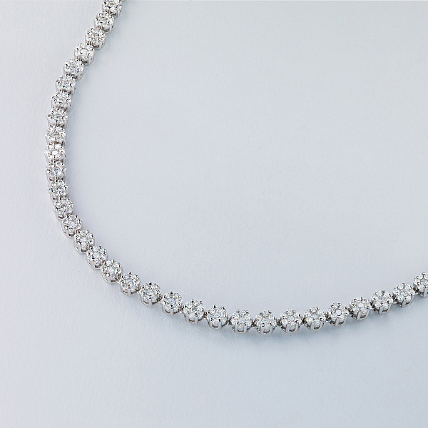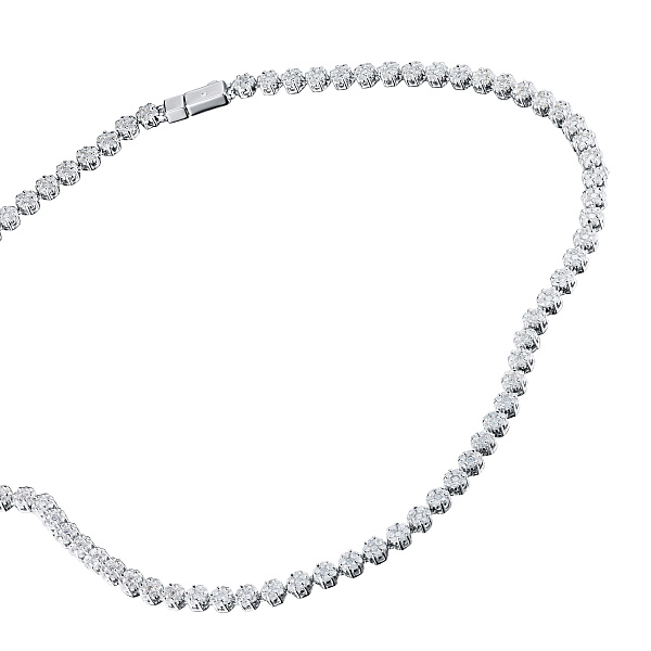Колье с бриллиантами (изготовление) — яркая модель размером 40.0, которая займет видное место в вашей коллекции драгоценностей или станет идеальным презентом дорогому человеку. Роскошное, изящное и притягательное изделие с якутскими камнями, имеющими безупречную огранку и эталонную прозрачность, будет ярким акцентом в любом образе и сделает элегантным даже самый простой наряд. Белое золото (585 проба) — идеальный фон для бриллиантов, в полной мере раскрывающий их красоту и утонченность. Вес модели составляет 30.01 граммов, на шее она смотрится очень аккуратно и не доставляет дискомфорта. — приемлемая цена за возможность выделиться из толпы и получить множество восхищенных взглядов.