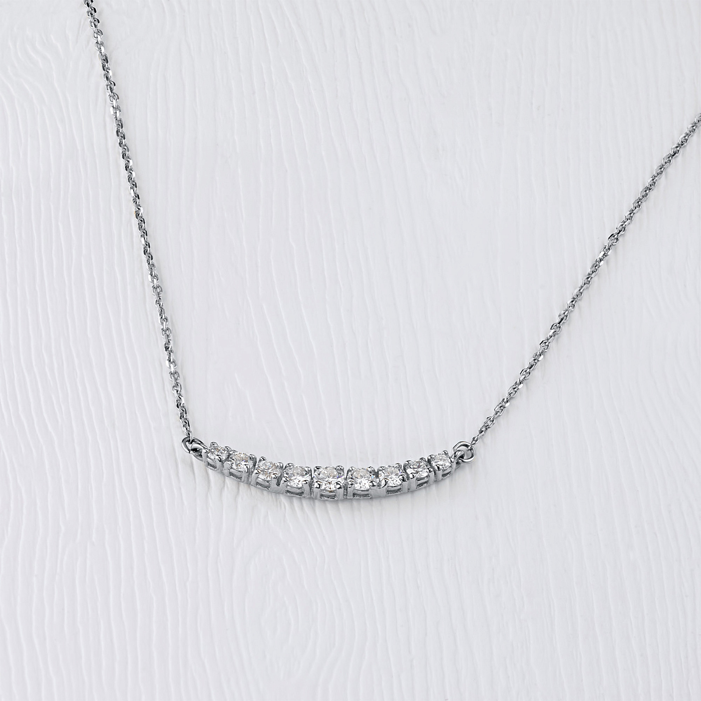 Колье с бриллиантами (изготовление) — яркая модель размером 40.0, которая займет видное место в вашей коллекции драгоценностей или станет идеальным презентом дорогому человеку. Роскошное, изящное и притягательное изделие с якутскими камнями, имеющими безупречную огранку и эталонную прозрачность, будет ярким акцентом в любом образе и сделает элегантным даже самый простой наряд. Белое золото (585 проба) — идеальный фон для бриллиантов, в полной мере раскрывающий их красоту и утонченность. Вес модели составляет 2.08 грамма, на шее она смотрится очень аккуратно и не доставляет дискомфорта. — приемлемая цена за возможность выделиться из толпы и получить множество восхищенных взглядов.