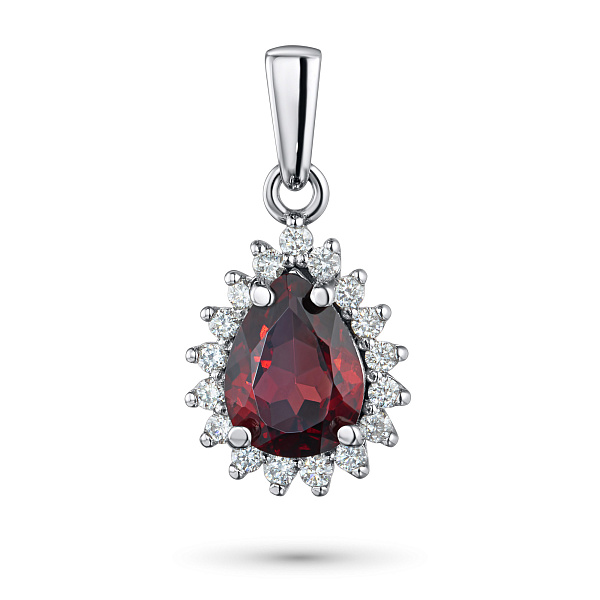 Подвеска с гранатом и бриллиантами (изготовление) — стильный аксессуар для торжественного случая и на каждый день. Белое золото элегантно смотрится в любом образе, самостоятельно или в сочетании с другими изделиями. Наши цены удивят вас — всего за изделие! Подвеска в обязательном порядке проходит опробование в Пробирной Палате РФ (585 проба). Есть сертификационная бирка.