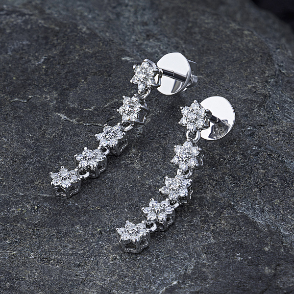 Пусеты с бриллиантами (изготовление) — великолепное пополнение вашей коллекции украшений. Продается по цене от производителя (). Ювелирное изделие с настоящими бриллиантами изготовлено на заводе «ЭПЛ Даймонд». Белое золото подчеркивает игру света на алмазных гранях, не боится влаги, подходит для повседневного ношения. Наши товары реализуются только в фирменных салонах.