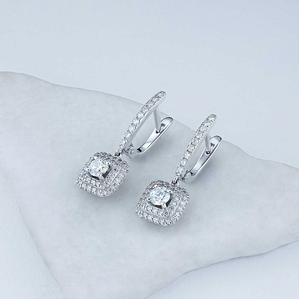 Серьги с бриллиантами (изготовление) — великолепное пополнение вашей коллекции украшений. Продается по цене от производителя (). Ювелирное изделие с настоящими бриллиантами изготовлено на заводе «ЭПЛ Даймонд». Белое золото подчеркивает игру света на алмазных гранях, не боится влаги, подходит для повседневного ношения. Наши товары реализуются только в фирменных салонах.