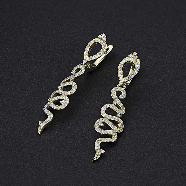 Перед вами — стильные серьги весом 4.71 грамма. Изделия прошли опробование в пробирной палате РФ (585 проба). Поставляются в фирменной упаковке. Ознакомьтесь с нашим каталогом, возможно, вы захотите подобрать кольцо или подвеску в тон.