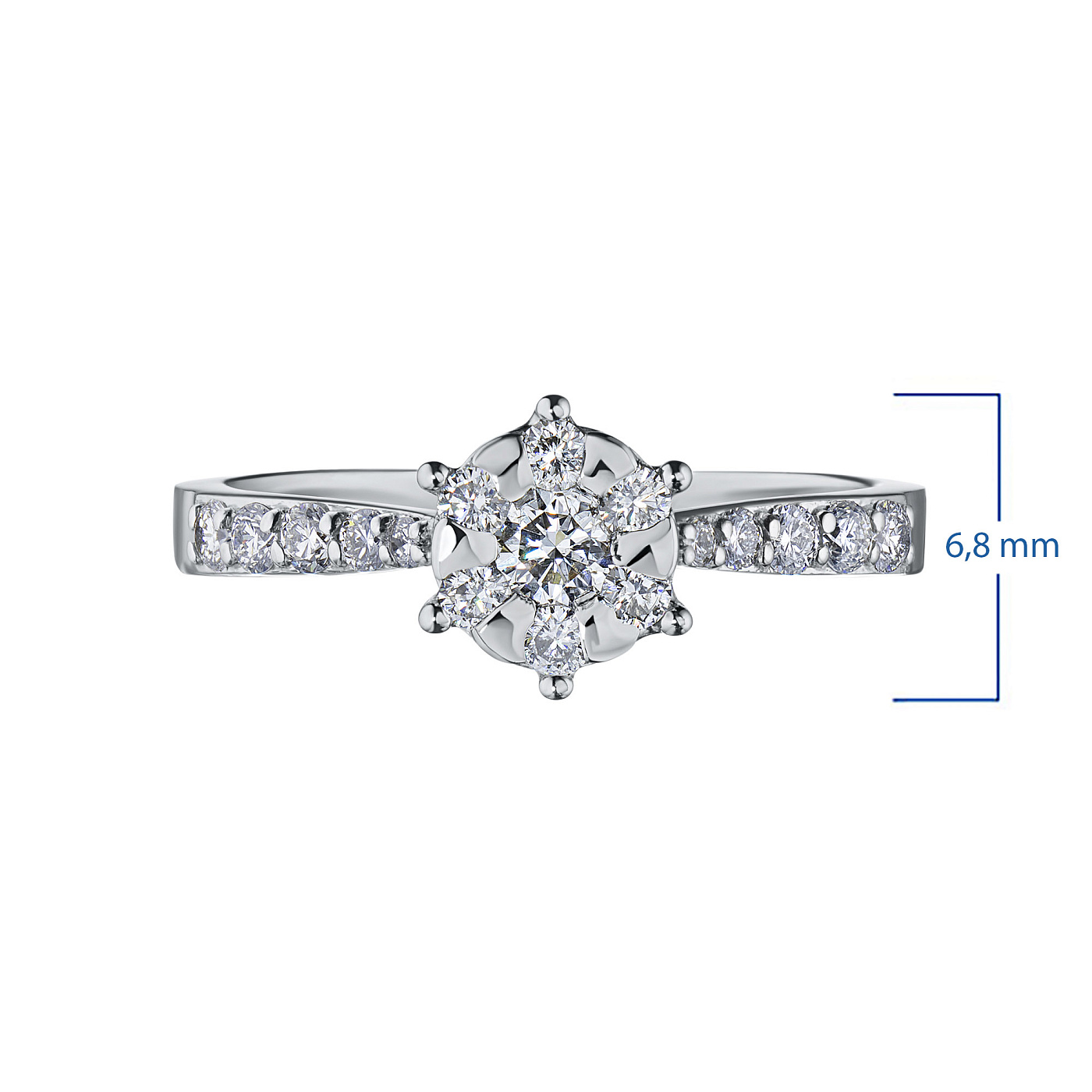 Кольцо из белого золота с бриллиантами — эксклюзивное украшение компании «ЭПЛ Даймонд». Это идеальный подарок для близкого человека, возможность продемонстрировать свой статус, хороший вкус. В изделии используются бриллианты высокой чистоты и прозрачности, без изъянов. Белое золото великолепно смотрится на руке, хорошо сочетается с другими украшениями. Соберите свой собственный гарнитур в ювелирном магазине «ЭПЛ»! Вес изделия: 3.19 грамма.