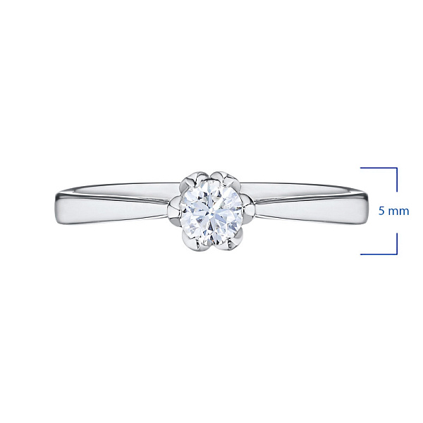 Помолвочное кольцо из белого золота с бриллиантом — эксклюзивное украшение компании «ЭПЛ Даймонд». Это идеальный подарок для близкого человека, возможность продемонстрировать свой статус, хороший вкус. В изделии используются бриллианты высокой чистоты и прозрачности, без изъянов. Белое золото великолепно смотрится на руке, хорошо сочетается с другими украшениями. Соберите свой собственный гарнитур в ювелирном магазине «ЭПЛ»! Вес изделия: 1.53 грамм.