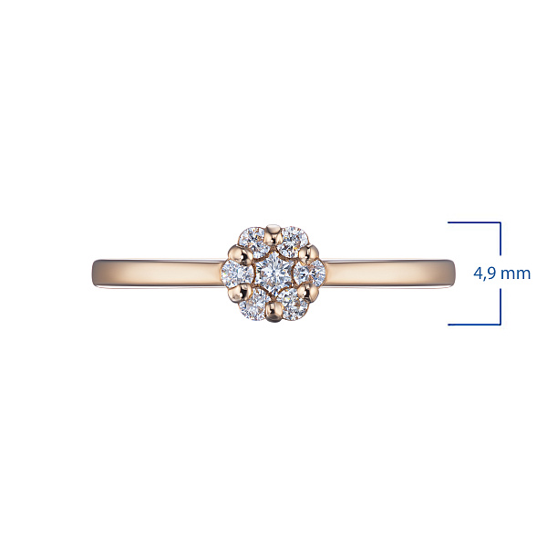 Кольцо из красного золота с бриллиантами — эксклюзивное украшение компании «ЭПЛ Даймонд». Это идеальный подарок для близкого человека, возможность продемонстрировать свой статус, хороший вкус. В изделии используются бриллианты высокой чистоты и прозрачности, без изъянов. Красное золото великолепно смотрится на руке, хорошо сочетается с другими украшениями. Соберите свой собственный гарнитур в ювелирном магазине «ЭПЛ»! Вес изделия: 1.63 грамм.