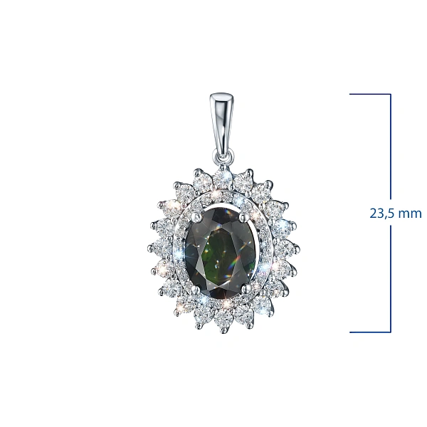 Подвеска из белого золота с хромдиопсидом — стильный аксессуар для торжественного случая и на каждый день. Белое золото элегантно смотрится в любом образе, самостоятельно или в сочетании с другими изделиями. Наши цены удивят вас — всего 96 048 ₽ за изделие! Подвеска в обязательном порядке проходит опробование в Пробирной Палате РФ (585 проба). Есть сертификационная бирка.