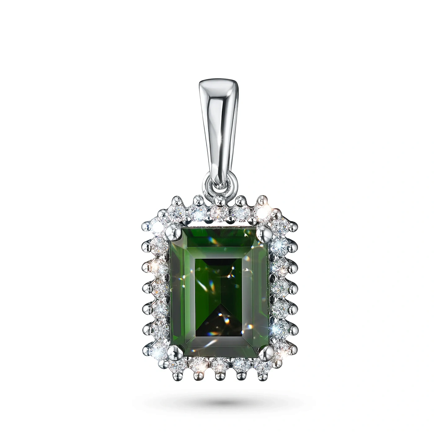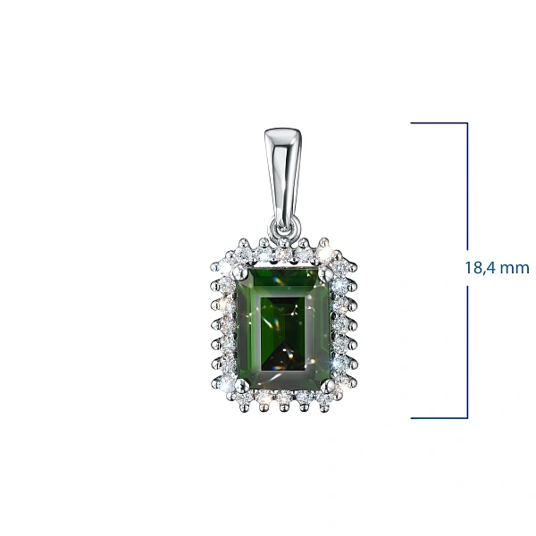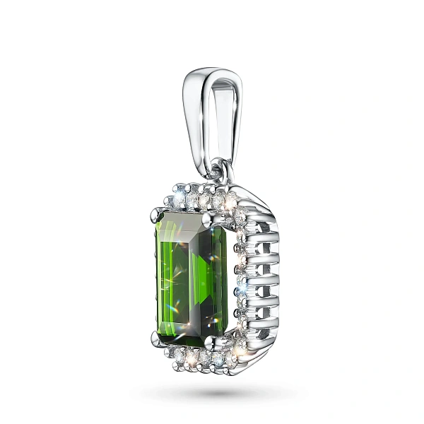 Подвеска из белого золота с хромдиопсидом — стильный аксессуар для торжественного случая и на каждый день. Белое золото элегантно смотрится в любом образе, самостоятельно или в сочетании с другими изделиями. Наши цены удивят вас — всего 66 092 ₽ за изделие! Подвеска в обязательном порядке проходит опробование в Пробирной Палате РФ (585 проба). Есть сертификационная бирка.