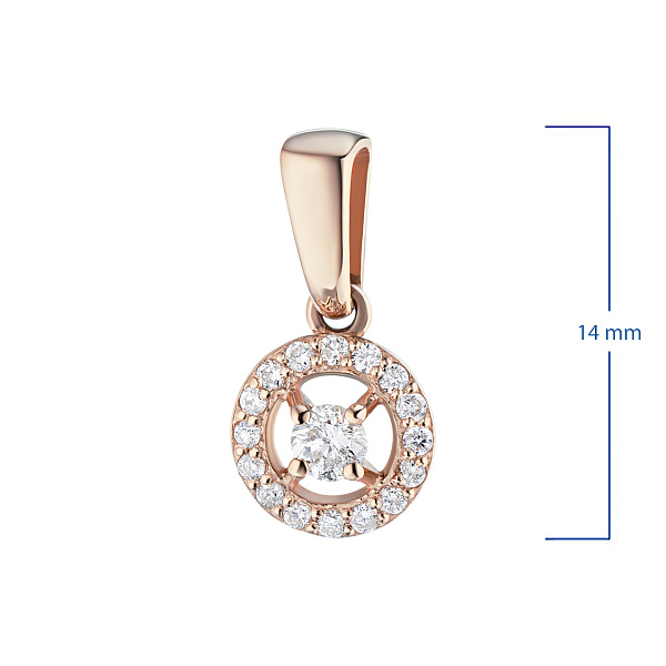 Подвеска из красного золота с бриллиантами — стильный аксессуар для торжественного случая и на каждый день. Красное золото элегантно смотрится в любом образе, самостоятельно или в сочетании с другими изделиями. Наши цены удивят вас — всего 35 920 ₽ за изделие! Подвеска в обязательном порядке проходит опробование в Пробирной Палате РФ (585 проба). Есть сертификационная бирка.