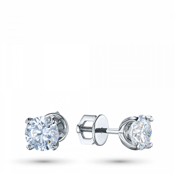 Пусеты из белого золота — великолепное пополнение вашей коллекции украшений. Белое золото подчеркивает игру света на алмазных гранях, не боится влаги, подходит для повседневного ношения. Наши товары реализуются только в фирменных салонах.