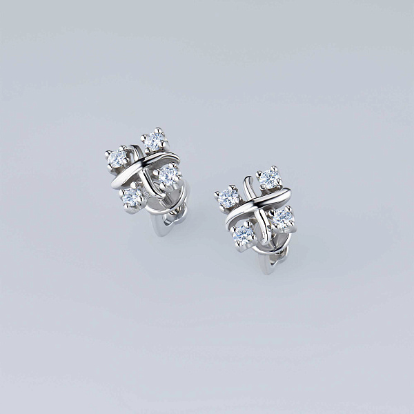 Пусеты из белого золота — великолепное пополнение вашей коллекции украшений. Белое золото подчеркивает игру света на алмазных гранях, не боится влаги, подходит для повседневного ношения. Наши товары реализуются только в фирменных салонах.