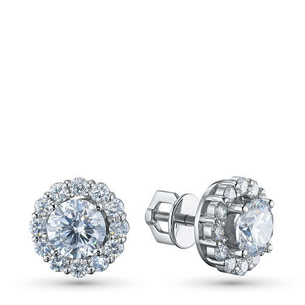 Пусеты из белого золота — великолепное пополнение вашей коллекции украшений. Белое золото подчеркивает игру света на алмазных гранях, не боится влаги, подходит для повседневного ношения. Наши товары реализуются только в фирменных салонах.