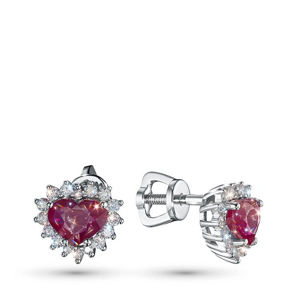 Пусеты из белого золота с рубинами и бриллиантами — великолепное пополнение вашей коллекции украшений. Продается по цене от производителя (393 368 ₽). Ювелирное изделие с настоящими бриллиантами изготовлено на заводе «ЭПЛ Даймонд». Белое золото подчеркивает игру света на алмазных гранях, не боится влаги, подходит для повседневного ношения. Наши товары реализуются только в фирменных салонах.