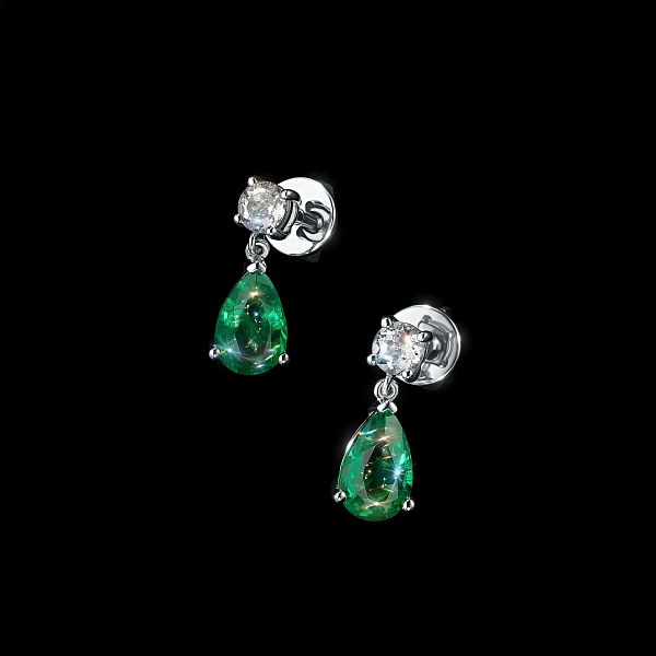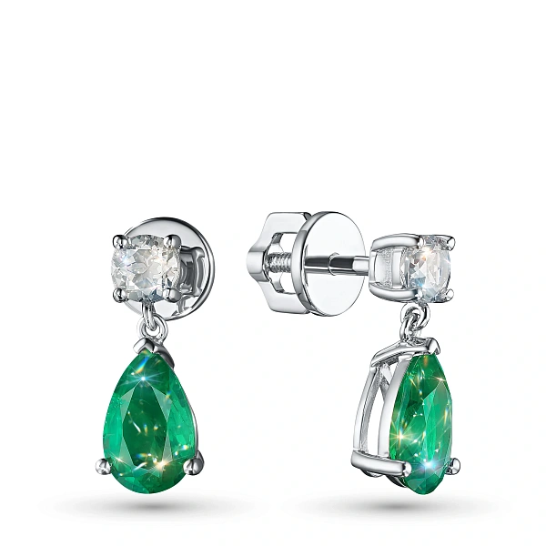 Пусеты из серебра с изумрудами и топазами — великолепное пополнение вашей коллекции украшений. Серебро подчеркивает игру света на алмазных гранях, не боится влаги, подходит для повседневного ношения. Наши товары реализуются только в фирменных салонах.