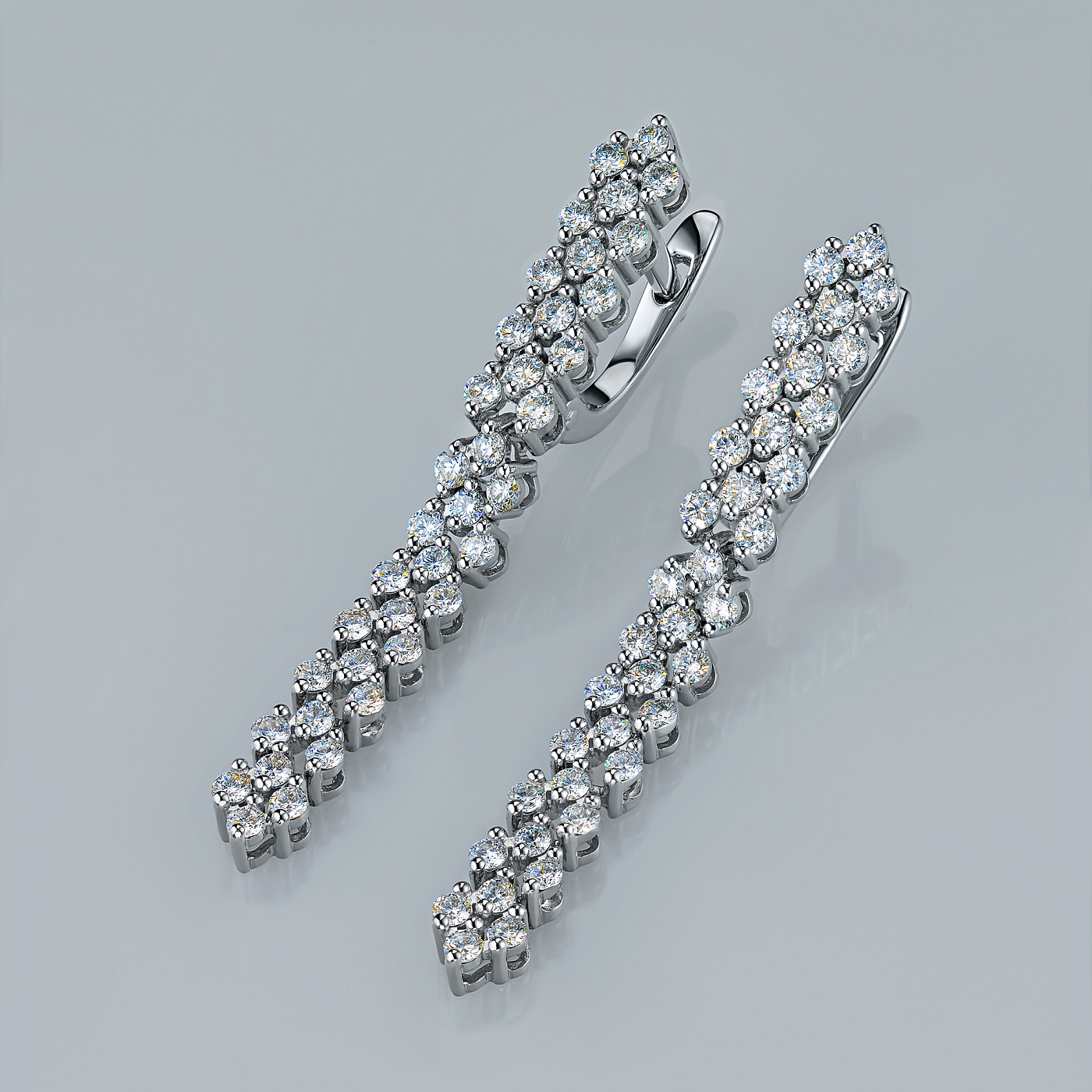 Серьги из белого золота — великолепное пополнение вашей коллекции украшений. Белое золото подчеркивает игру света на алмазных гранях, не боится влаги, подходит для повседневного ношения. Наши товары реализуются только в фирменных салонах.