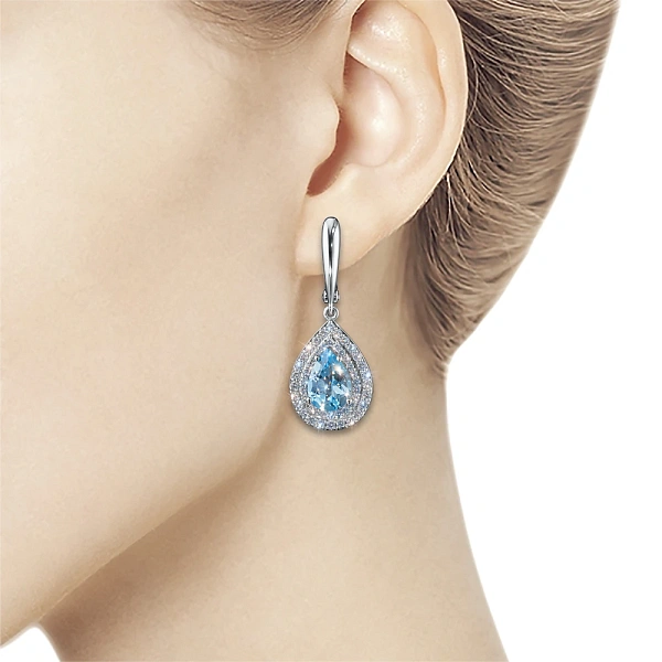 Серьги из белого золота с топазами — великолепное пополнение вашей коллекции украшений. Белое золото подчеркивает игру света на алмазных гранях, не боится влаги, подходит для повседневного ношения. Наши товары реализуются только в фирменных салонах.