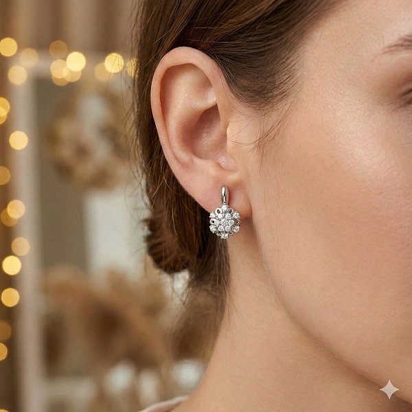 Серьги из серебра — великолепное пополнение вашей коллекции украшений. Серебро подчеркивает игру света на алмазных гранях, не боится влаги, подходит для повседневного ношения. Наши товары реализуются только в фирменных салонах.